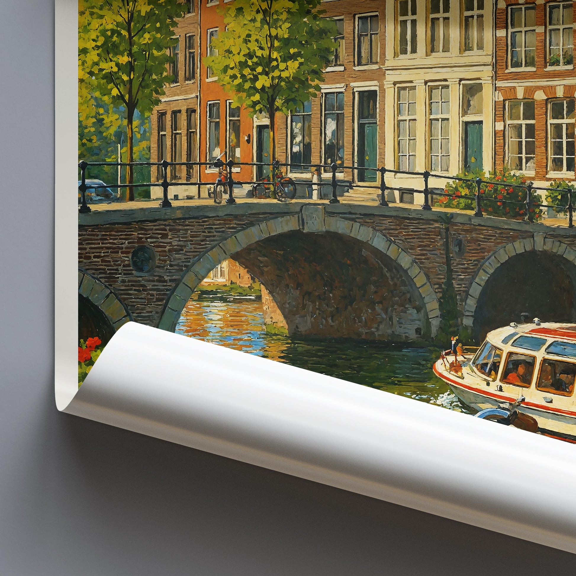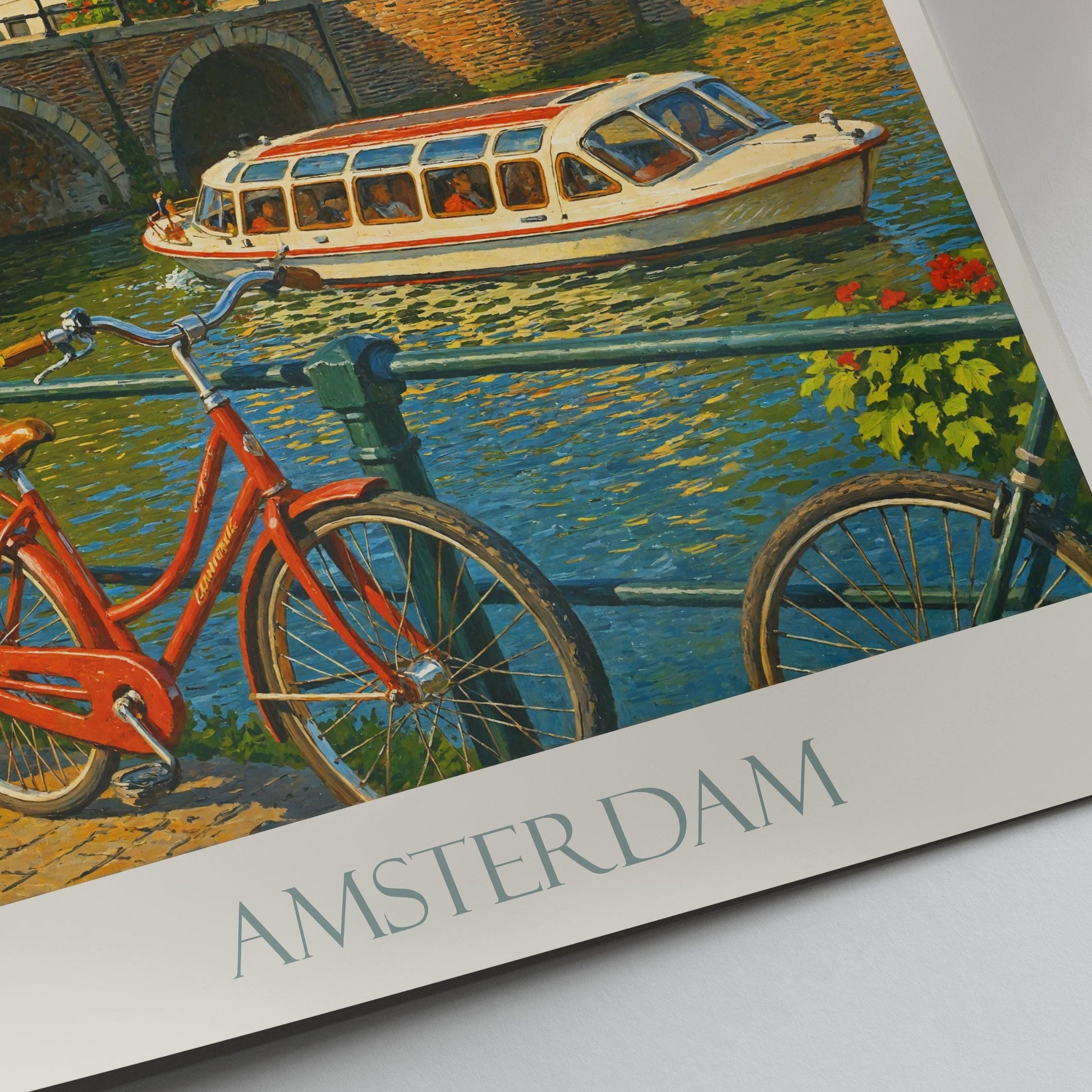 Keywords: Amsterdam bicycle print, Netherlands cycling art, Dutch travel poster, canal and bike scene, Amsterdam street photography art, Europe bicycle wall art