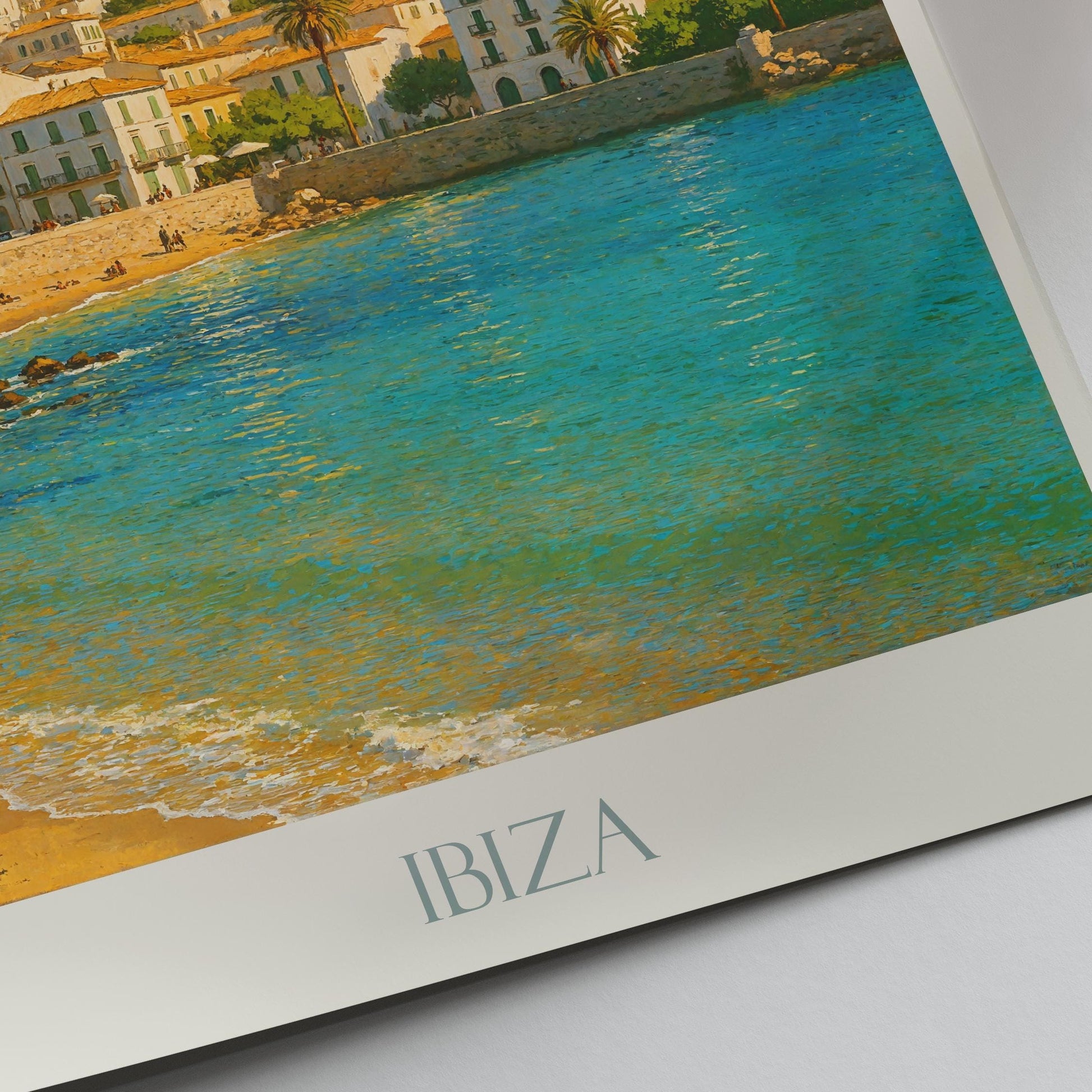 Experience the perfect harmony of culture and coast with this stunning Ibiza Old Town (Dalt Vila) travel poster. From shimmering turquoise waters and golden sands to the ancient fortress and cathedral perched on the hillside, this painted scene beautifully encapsulates Ibiza's Mediterranean allure. A must-have for admirers of Balearic landscapes and Spanish charm.