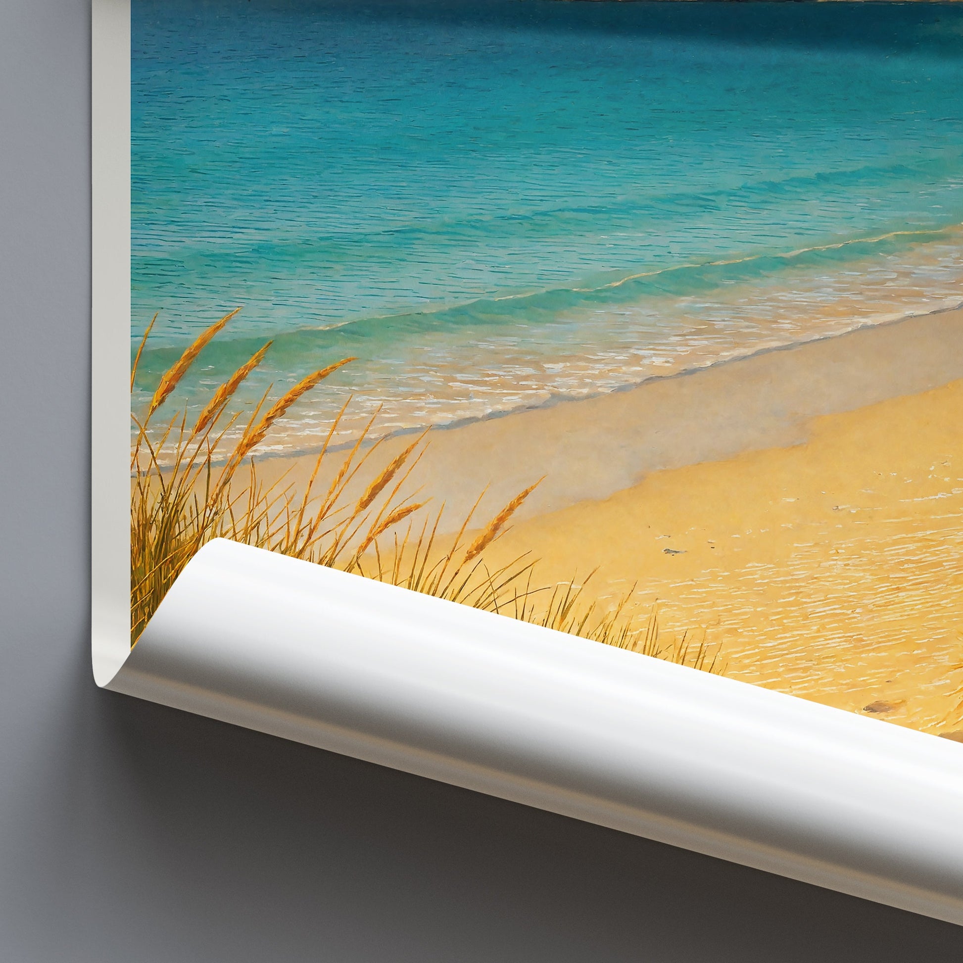 LUSKENTYRE BEACH (Isle of Harris, Scotland) – Immerse yourself in the stunning natural beauty of Scotland's Outer Hebrides with this captivating travel poster of Luskentyre Beach. This exquisite art print captures the iconic golden sands and dazzling turquoise waters of one of the world's most beautiful beaches, nestled against a backdrop of rolling hills and dramatic Scottish landscapes. The painting-like quality evokes a serene, timeless escape, making it a perfect piece for any home.
