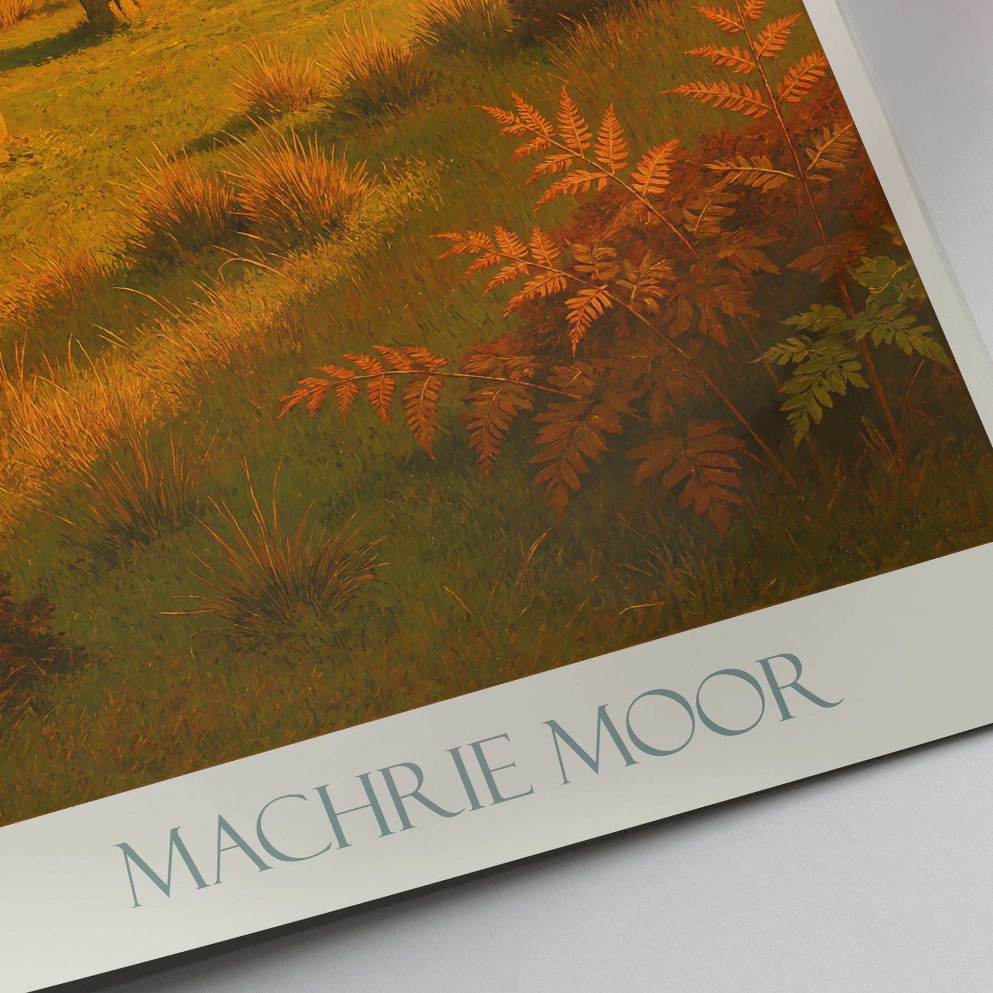 MACHRIE MOOR STONES (Isle of Arran, Scotland) – Immerse yourself in the ancient mystique of Scotland with this captivating travel poster featuring the iconic Machrie Moor Stones on the Isle of Arran. This stunning art print beautifully captures the megalithic standing stones bathed in the warm, golden glow of a sunlit afternoon, evoking a sense of timeless wonder and rugged Scottish beauty.