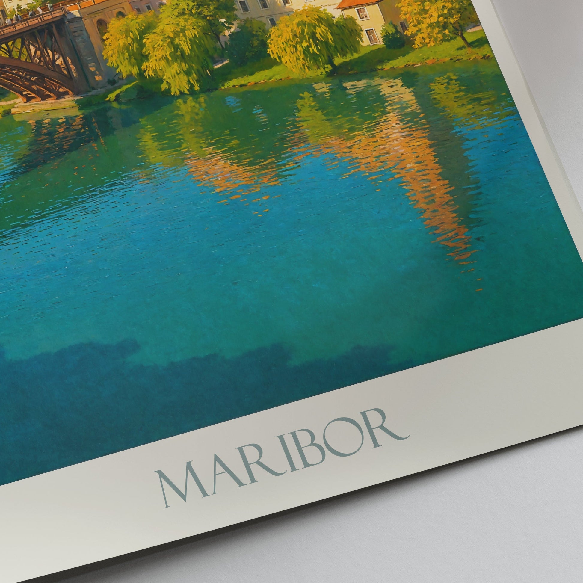 Maribor Slovenia Travel Poster | River Cityscape Art Print | Vibrant European Wall Decor | Architectural Painting | Vacation Gift