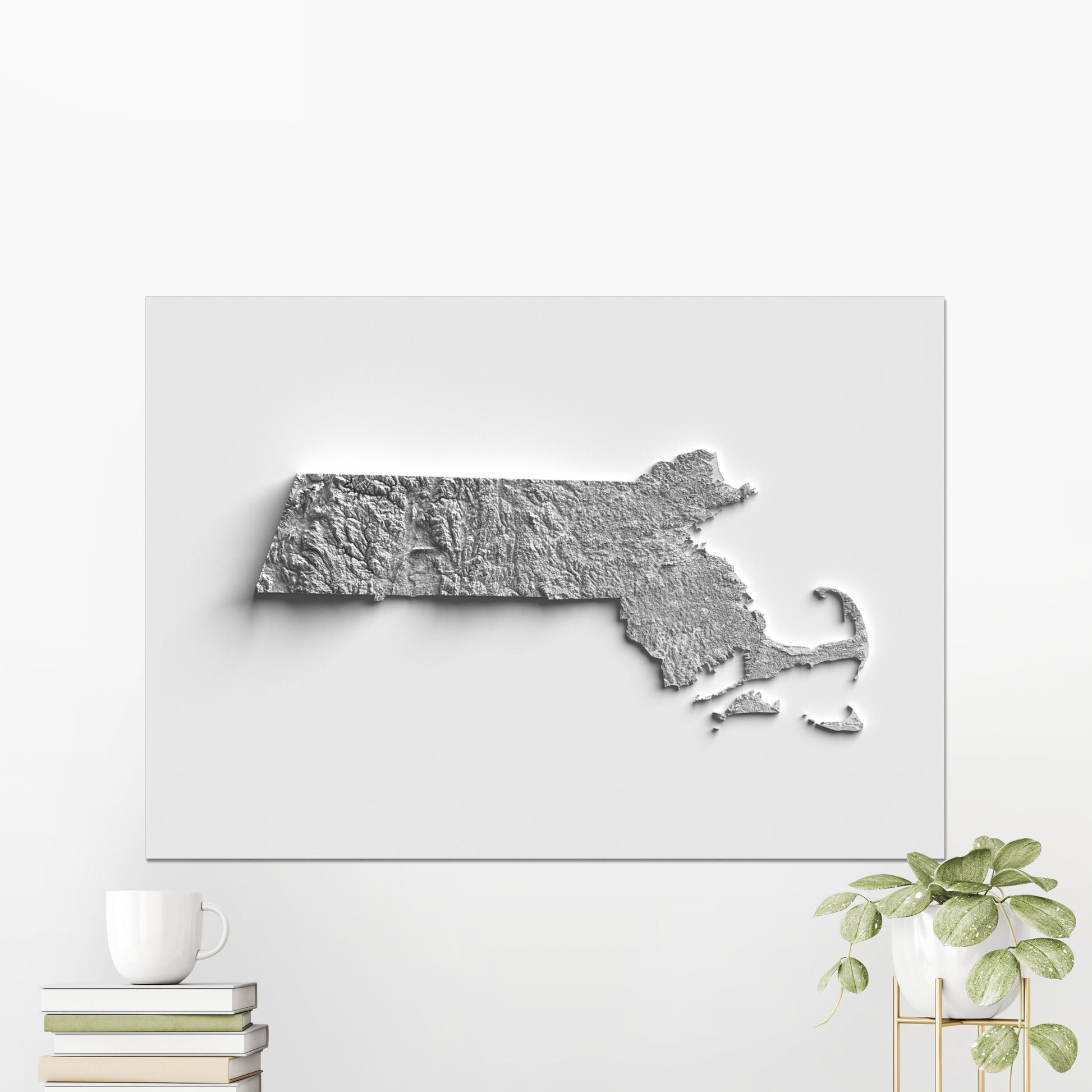 Massachusetts ~ 2D Shaded Relief Map Topographic Print Poster