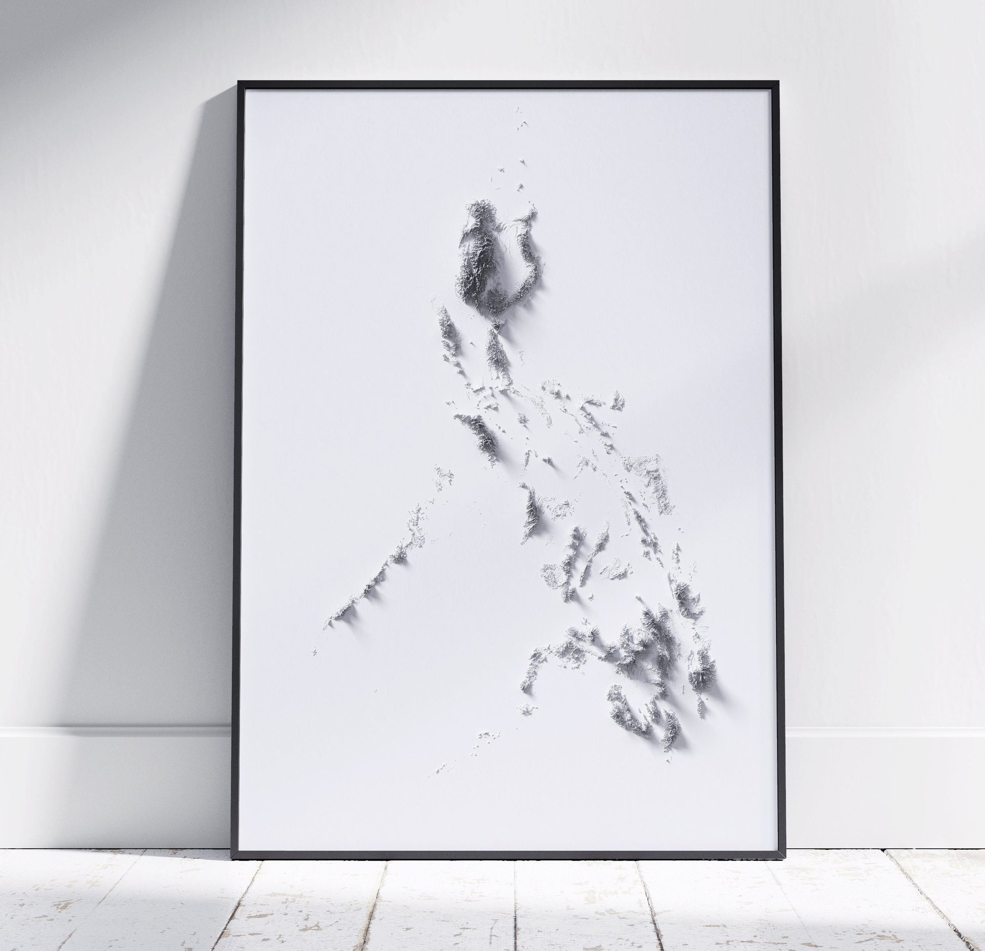 Philippines ~ Modern 2D Shaded Relief Print ~ Plain Topographic Map
