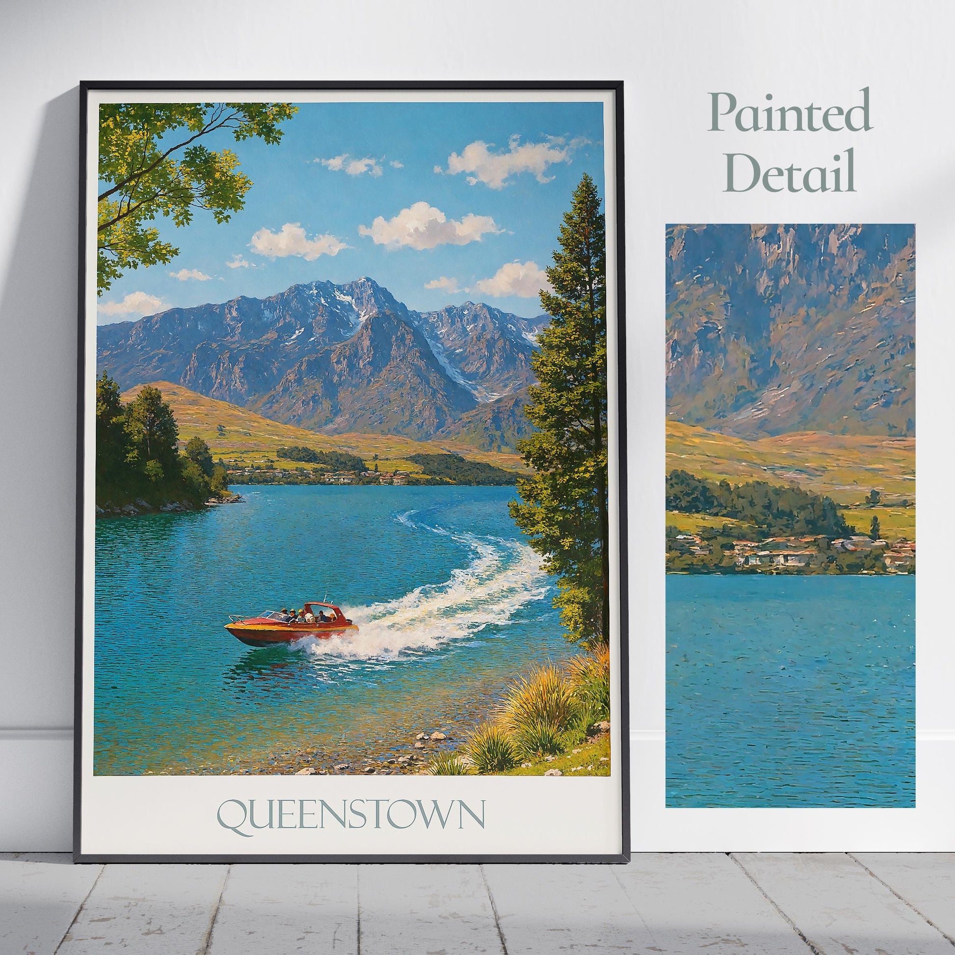 Queenstown Travel Print ~ New Zealand Travel Poster Wall Art Home Decor Gift Personalized Framed