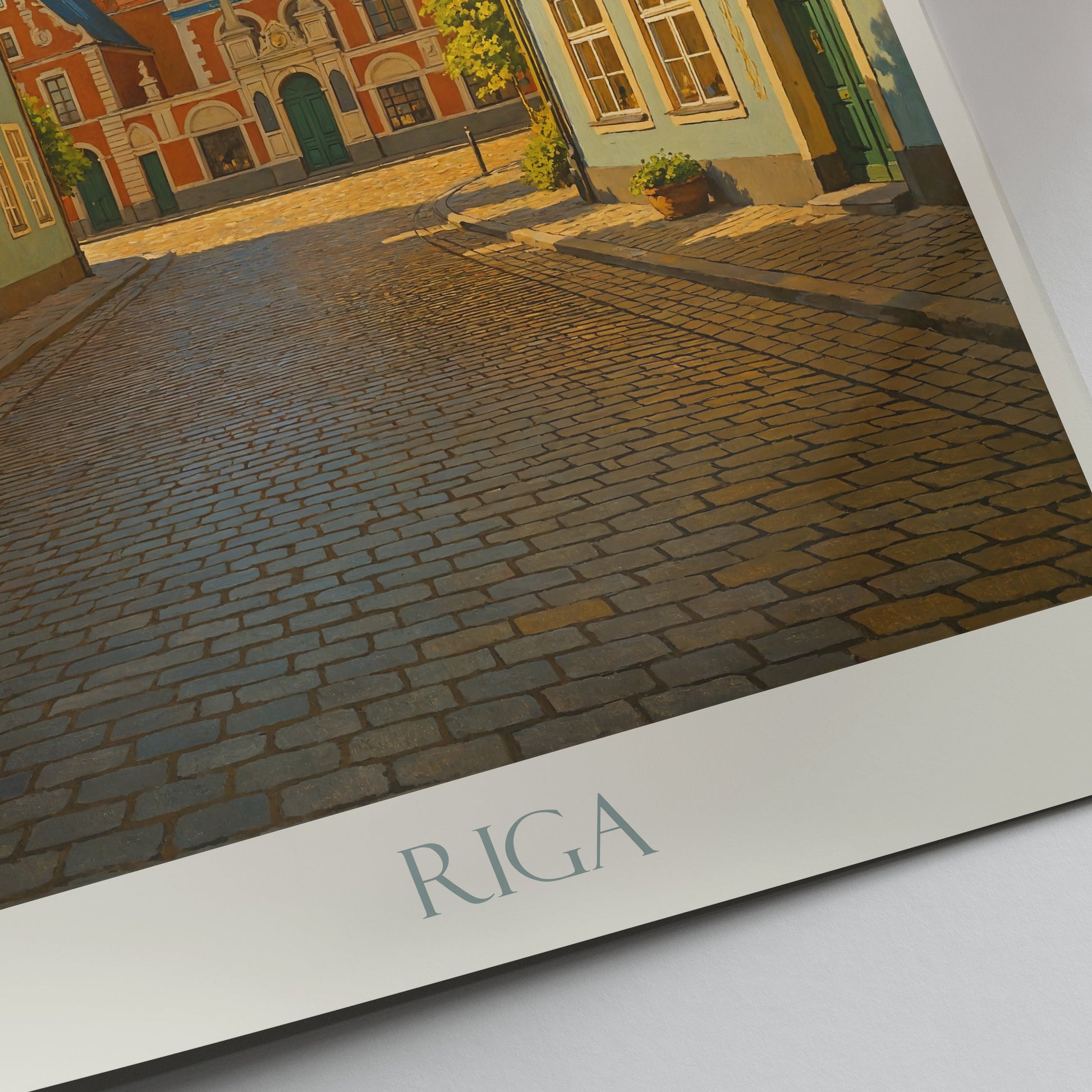RIGA (Latvia) - House of the Blackheads and Old Town Charm. Bring the enchanting spirit of Latvia to your home with this stunning travel poster showcasing the iconic House of the Blackheads in Riga's vibrant Old Town. This captivating art print perfectly captures the historic elegance of the cobblestone streets lined with beautifully preserved, colorful Hanseatic-style buildings. Admire the intricate facade of the House of the Blackheads, a symbol of Riga's rich merchant history, framed by a clear blue sky and lush greenery. Perfect for travel enthusiasts, history lovers, or anyone seeking a unique piece of European charm, this Riga Latvia art print is an ideal addition to your living room, office, or bedroom, inviting dreams of Baltic adventures.
