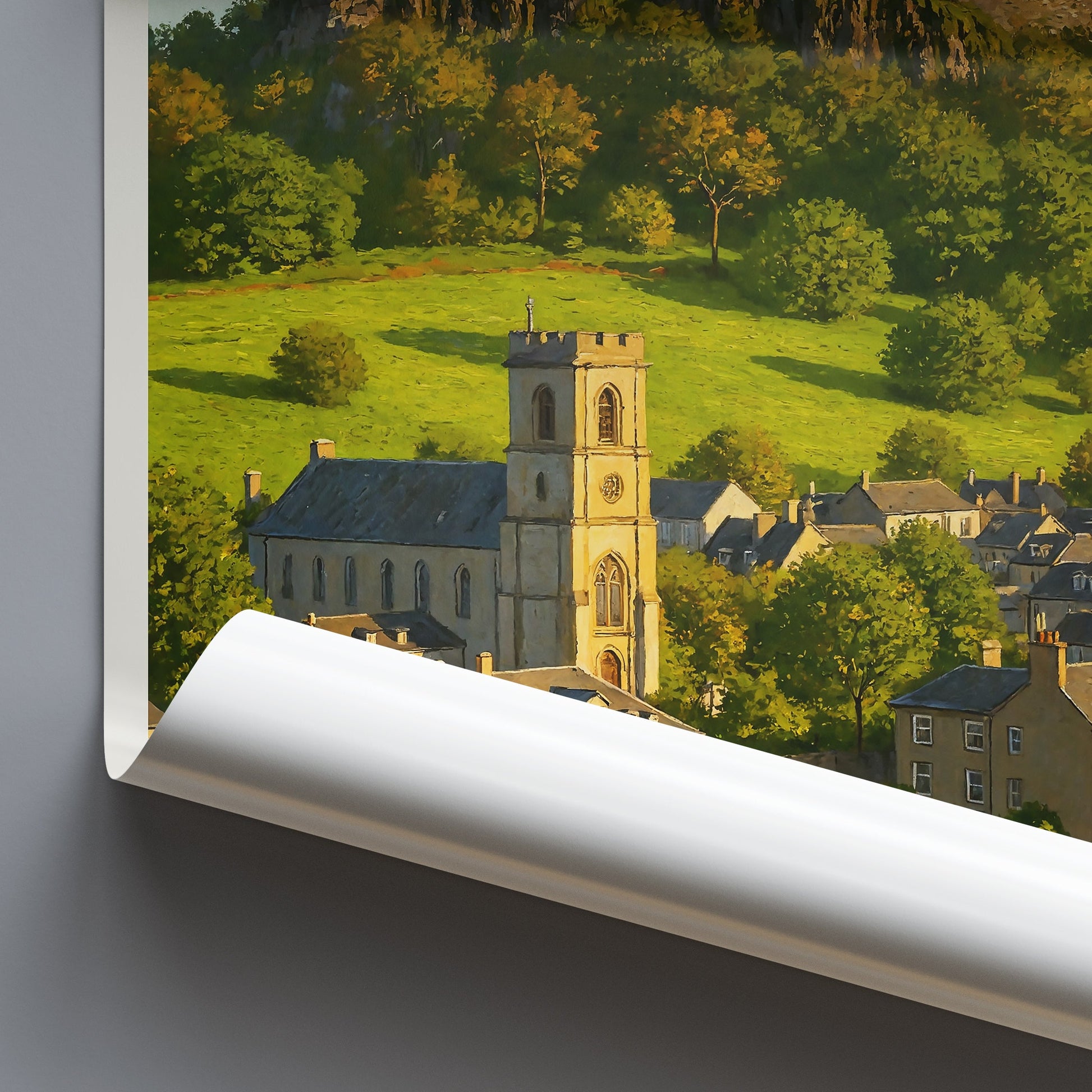 Immerse yourself in the timeless beauty of Scotland with this captivating Stirling travel poster. This stunning art print showcases the majestic Stirling Castle perched atop its volcanic crag, overlooking the historic city and the picturesque River Forth valley. In the distance, the iconic Wallace Monument stands tall on Abbey Craig, a proud tribute to Scotland's rich heritage and national heroes. Captured in a beautiful painterly style with warm, golden light, this poster evokes the charming, historic atmosphere of one of Scotland's most significant cities.