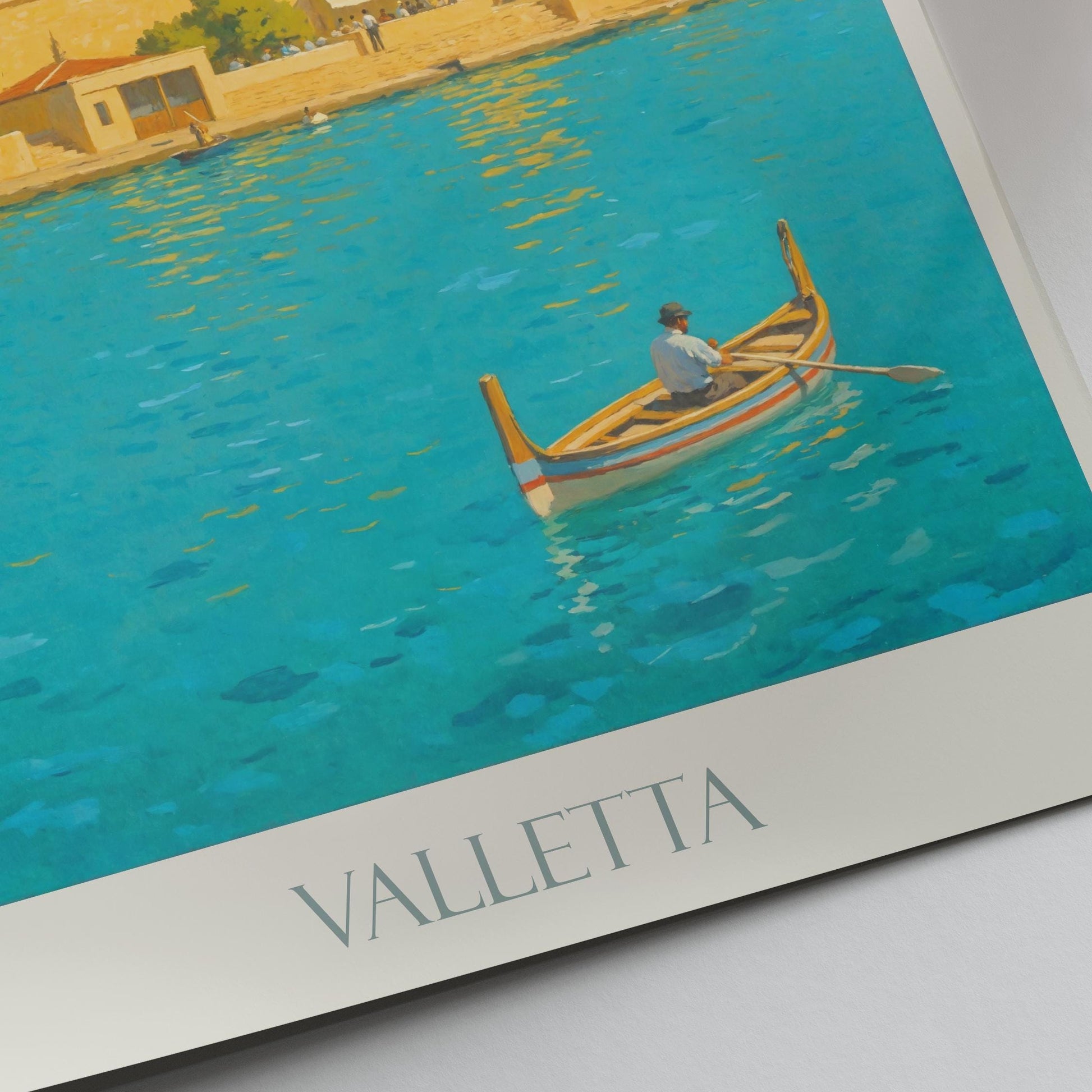 Keywords: Valletta travel poster, Malta skyline art, Mediterranean city print, Basilica dome Valletta, St. Paul's Cathedral Malta, Maltese harbor decor.
