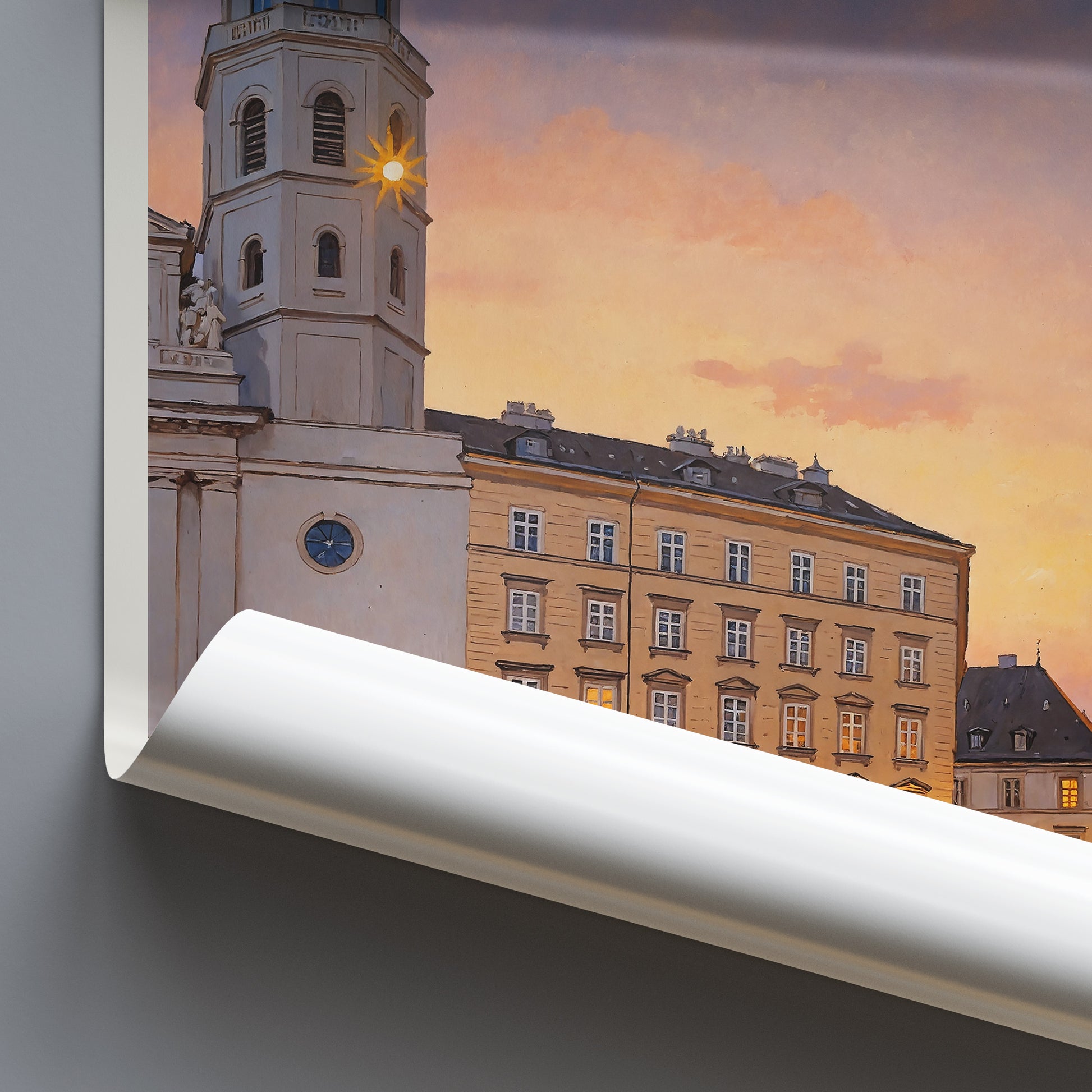 Vienna Travel Poster, Michaelerplatz Sunset | Wien City Square Art Print | European Wall Decor Gift